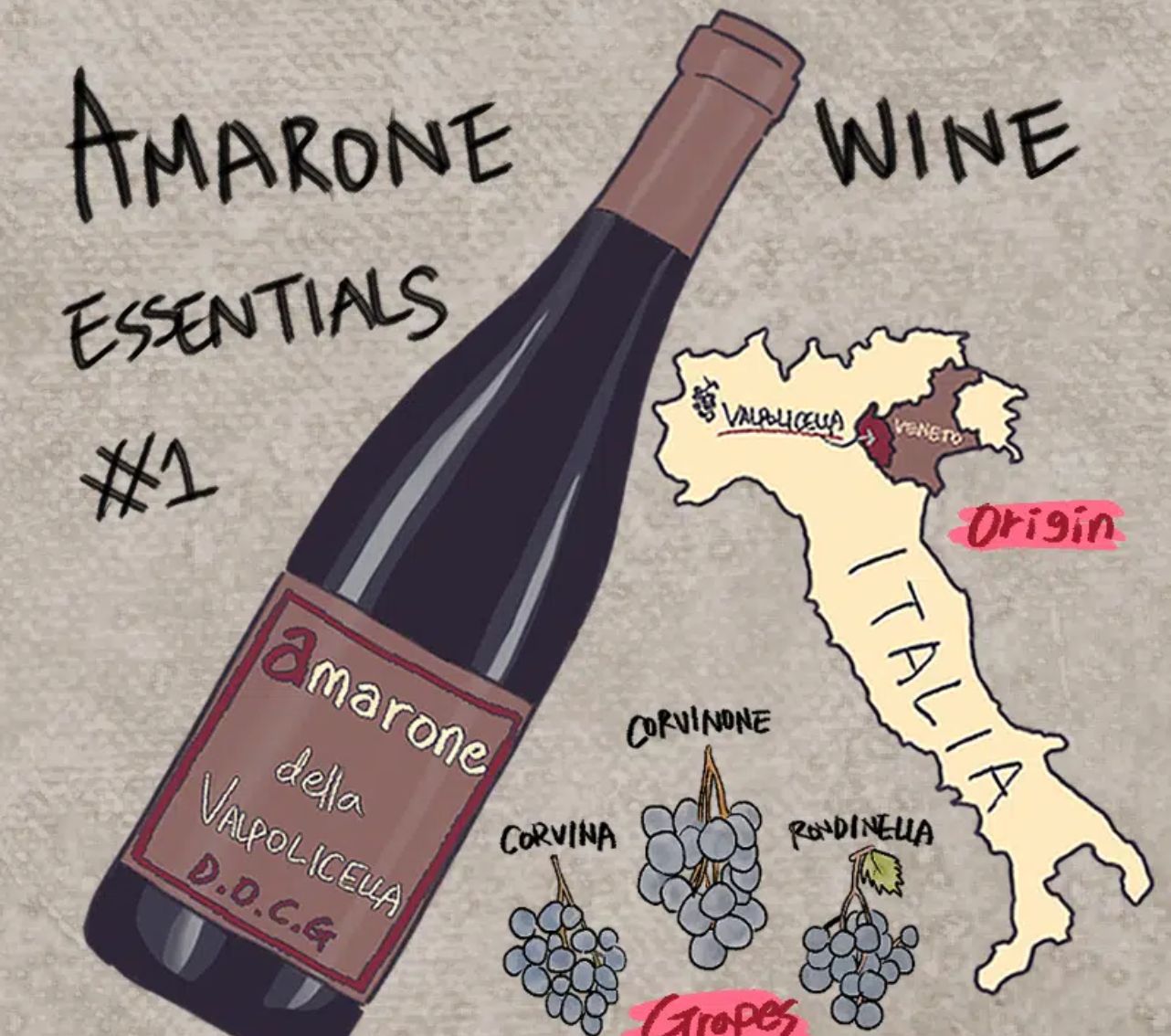 Valpolicella vốn nổi tiếng với rượu từ thời La Mã cổ đại. Amarone được xem là “hậu duệ” của Recioto della Valpolicella - loại vang ngọt truyền thống được làm từ cùng phương pháp Appassimento nhưng giữ lại đường dư. Theo nhiều giai thoại, Amarone ra đời tình cờ khi một mẻ Recioto lên men hết đường, tạo thành rượu vang khô với hương vị đầy đặn và mạnh mẽ.