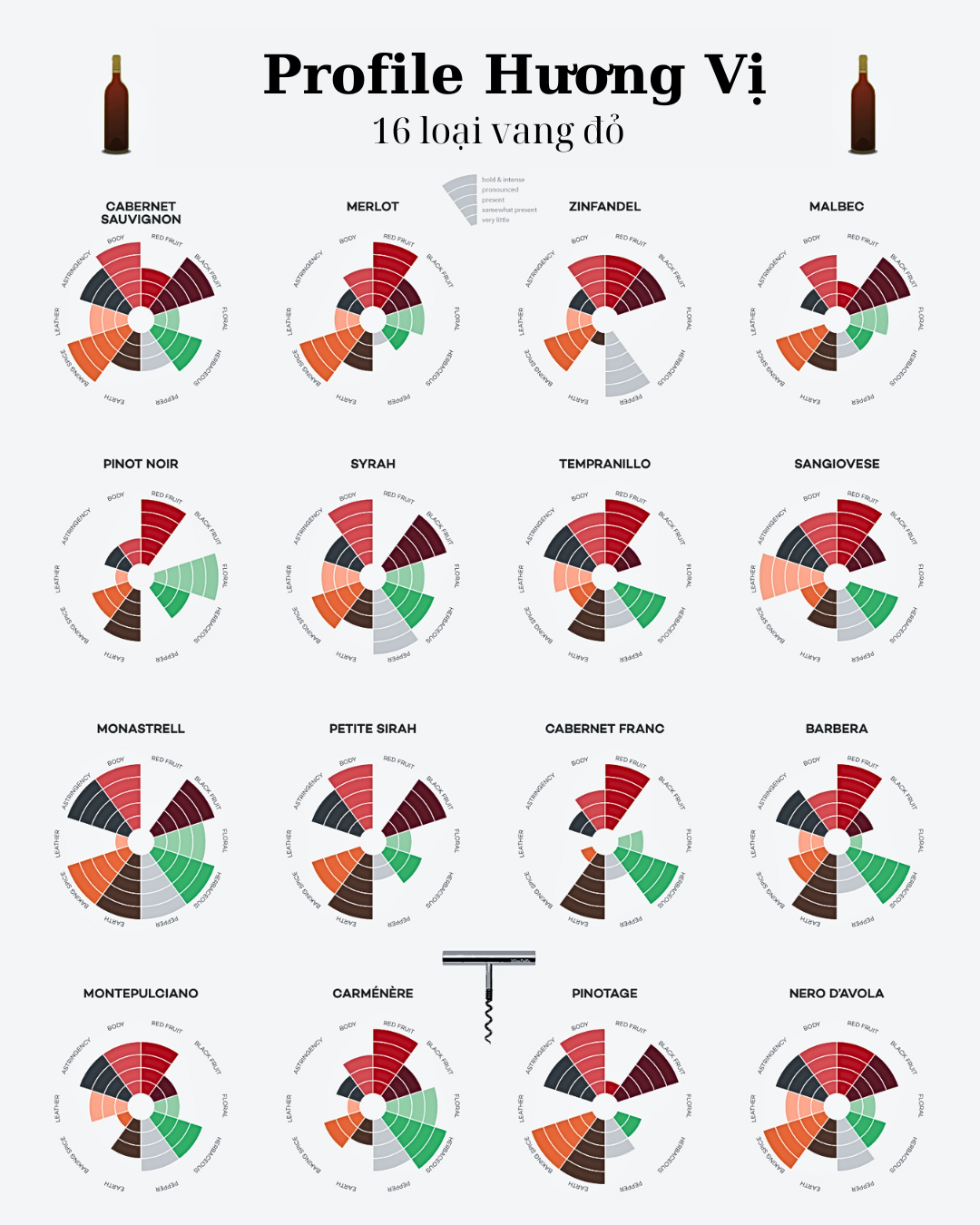 - Giống nho (Grape variety): mỗi giống nho có đặc tính hương vị riêng – từ trái cây đến thảo mộc.
