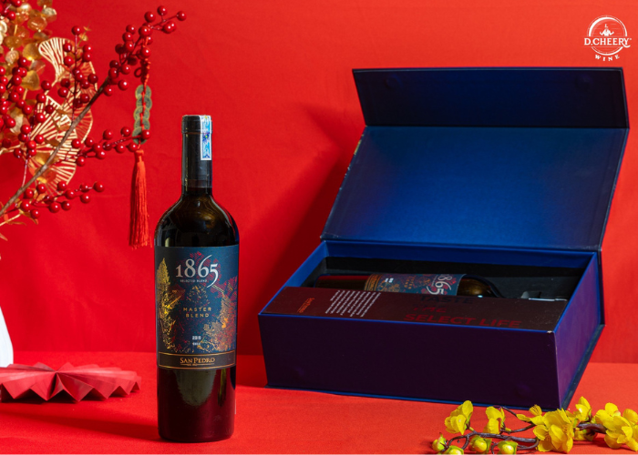 Một phiên bản cao cấp hơn của dòng vang đỏ nhà San Pedro 1865 là hộp quà rượu 1865 Master Blend. Đây là hộp quà rượu biếu tặng với sắc xanh bắt mắt, sống động xanh coban sang trọng cùng thiết kế tinh tế. Hộp quà được làm từ chất liệu giấy bìa cứng cáp, mang đến một sắc thái sang trọng khó tìm, một lựa chọn tặng phẩm độc đáo, khác biệt mà người nhận sẽ đón nhận một sự tôn trọng tuyệt đối.