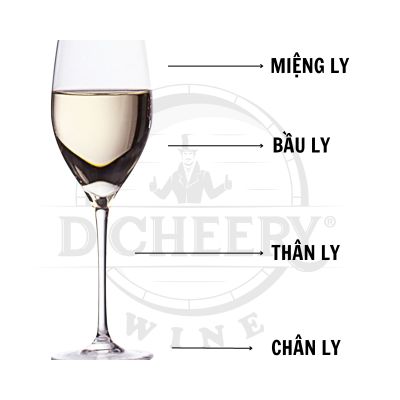 Cấu tạo của ly rượu vang gồm: