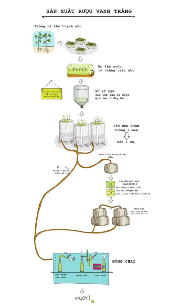 Cuối cùng là công đoạn đóng chai và dán nhãn trước khi bán ra thị trường. Rất ít rượu vang trắng được ủ trong chai.