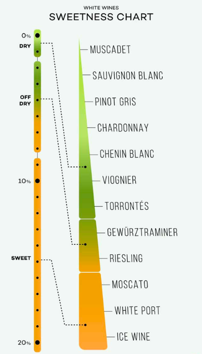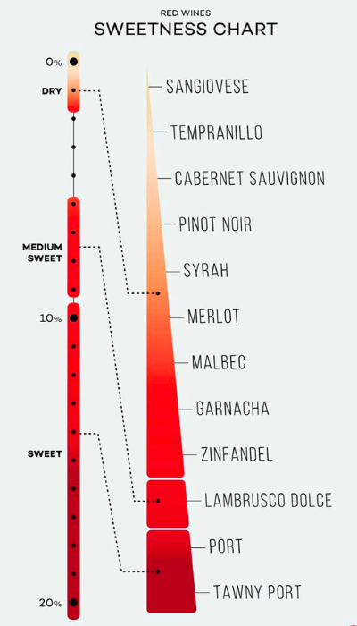 Thường thì phong cách và độ ngọt của rượu vang có xu hướng như nhau với giống nho. Độ ngọt của vang sẽ dao động từ gần như là không ngọt lên đến 70%.
