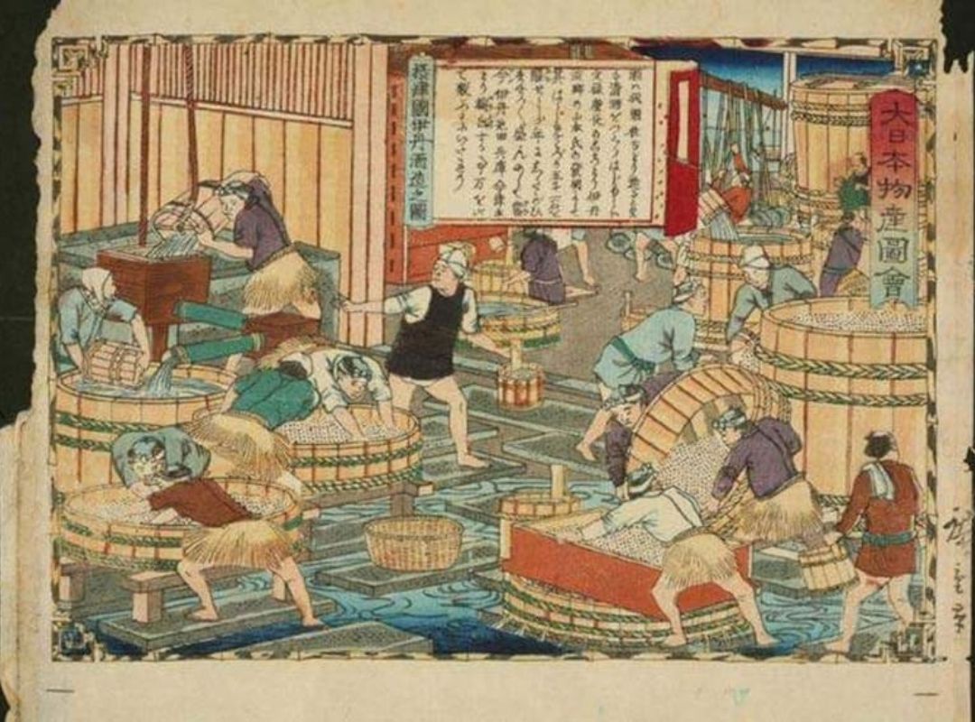 Trong thời kỳ Edo, quá trình nấu rượu sake đã được sản xuất hàng loạt bởi các thợ thủ công, với chất lượng ngày càng được nâng cao. Các kỹ thuật tiên tiến như "ủ lạnh" vào mùa đông, "phương pháp nhẹ" để tinh chỉnh hương thơm của sake và "phương pháp đốt" nhằm cải thiện khả năng bảo quản đã được phát triển và phổ biến nhờ nỗ lực của các thương nhân.