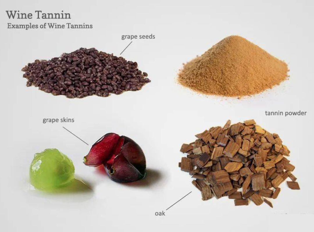 Không chỉ riêng nho, các loại thực phẩm như hạt lựu, sô-cô-la đen, trà xanh, hay quả hồng cũng chứa tannin. Tuy nhiên, trong thế giới rượu vang, tannin lại đóng vai trò đặc biệt trong việc định hình hương vị và khả năng lão hóa của rượu.